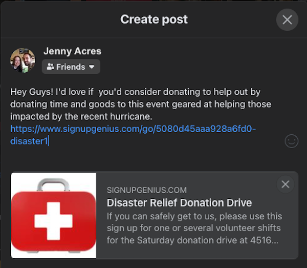 No matter how you share your sign up, you will be putting your donation page directly in front of family, friends, and acquaintances who are likely to help out if they can. Don't forget to encourage them to share your link and website on their own social media accounts to help spread the word further!
