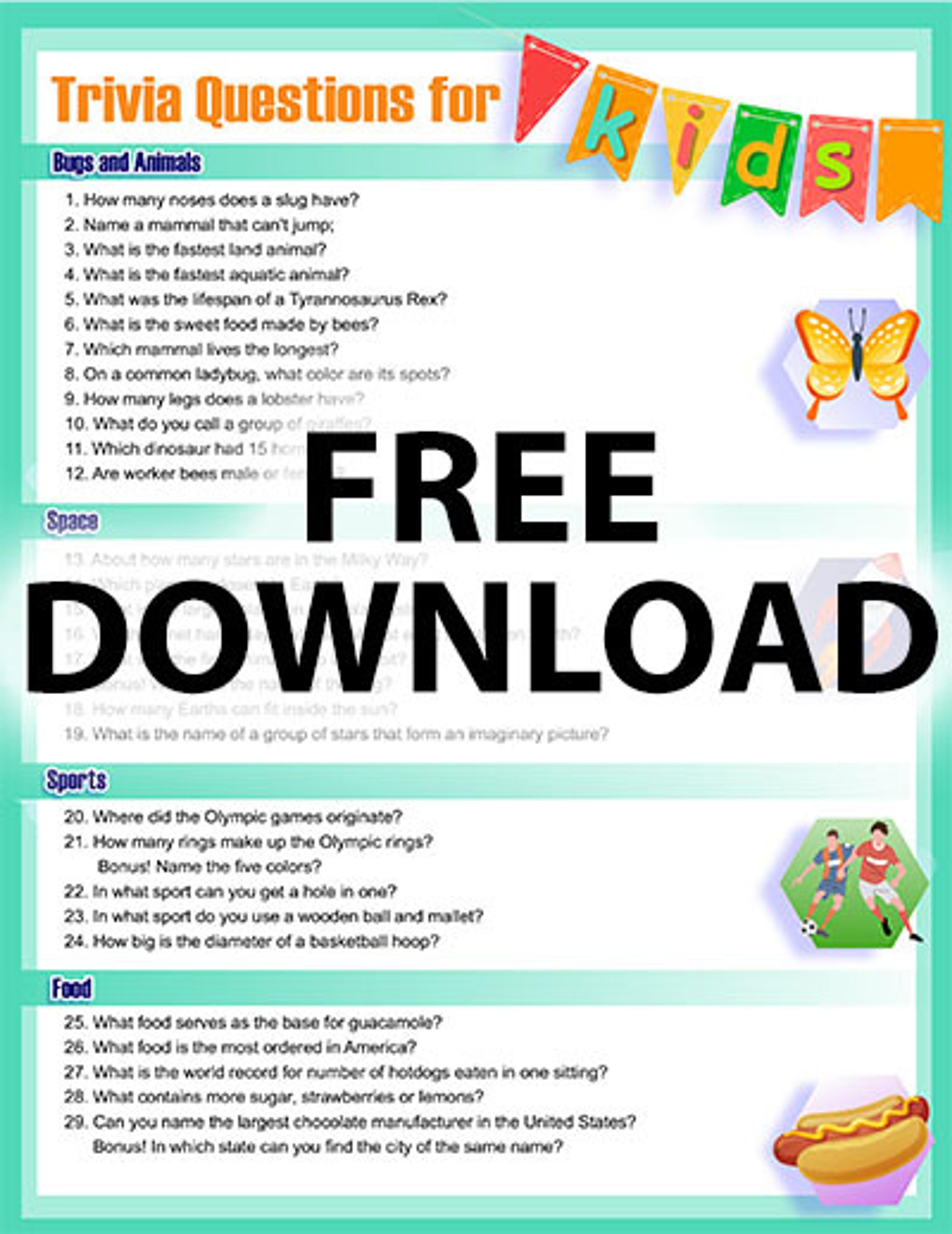 50 Trivia Questions for Kids